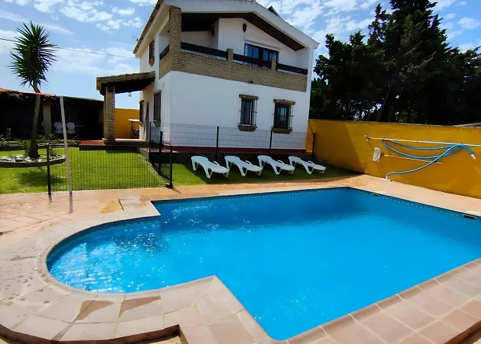 Chalet Con Piscina Y Jardin Privado No Aceptamos Grupos De Jovenes Conil De La Frontera lies 10 minutes' drive from Club de Golf Campano. Wi-Fi and parking are among the essentials at guests' disposal.